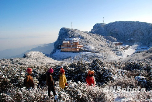 11月中旬,重庆金佛山迎来今冬首场大雪,漫天飞舞的雪花给人留下无穷诗意,海拔1500米以上的地方变成粉妆玉砌的世界。据称,这是当地近10年来“面积最大,来得最早”的一场雪。图为游人兴致盎然漫步雪山。中新社发 夏武 摄