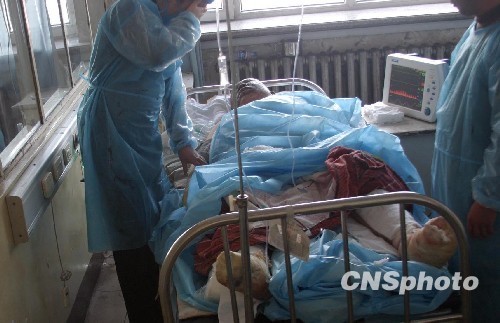 发生于21日的鹤岗新兴煤矿瓦斯事故目前已有63名被困人员获救,仍有21人被困井下。伤者现在当地两家医院接受治疗。中新社发 吴兆飞 摄