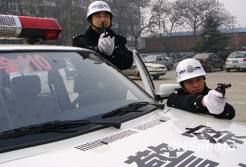 11月26日,河北石家庄市首批100支2005式9毫米警用转轮手枪配发给市公安巡警支队。据介绍,该枪号称中国警用第一枪,可发射9毫米转轮手枪弹和非致命橡皮弹,射击精度高、故障率低,且可根据任务需要使用不同子弹。中新社发 翟羽佳 摄