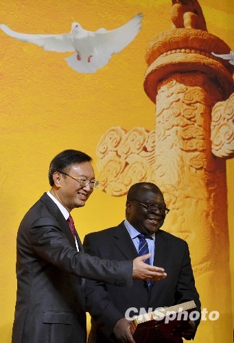 11月26日,中国外交部长杨洁篪向非洲驻华使团长、多哥驻华大使塔·阿马赠送中国外交年度画册创刊号——《中国外交2008》。当日,中国外交年度画册创刊号首发式在北京举行。中新社发 廖攀 摄
