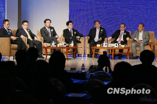11月26日,2009第七届全球华人企业领袖峰会在北京召开。共有300多位企业领袖、财经专家、媒体老总等出席本次峰会。在双峰对话讨论环节,企业领袖和媒体精英分别就“国进民退:存在是否合理”和“经济危机:我们如何度过”两大主题进行探讨。中新社发 苏丹 摄