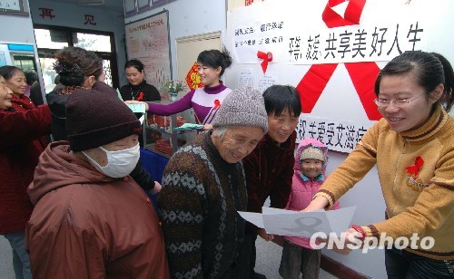 11月30日,辽宁省锦州市康宁街道百名艾滋病防控宣传志愿者,在“世界艾滋病日”前走进社区,向居民宣传防控知识,发放药具,提醒人们关注健康,珍惜生命。中新社发 李铁成 摄