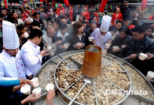 12月1日,在福州会展中心广场举行的“中国(福州)首届百洋火锅节”上,主办方举行千人共享火锅盛宴,吸引民众在一睹巨型火锅风采的同时争相品尝美食。本届火锅节,旨在“弘扬闽都饮食文化,倡导健康生活方式”,开展海峡两岸冷冻鱼糜饮食文化交流,推动和传播鱼糜食品饮食文化繁荣与发展。中新社发 刘可耕 摄