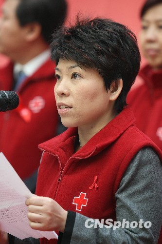 12月1日,中国红十字会艾滋病工作形象大使邓亚萍在北京南站参加艾滋病日纪念活动。当日是第22个“世界艾滋病日”,中国红十字会与铁道部联合组织开展全国省会城市火车站和旅客列车世界艾滋病日宣传活动。中新社发 苏丹 摄