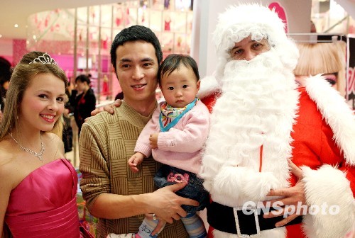 12月6日,一位“圣诞老人”光临上海芭比全球首家旗舰店,携手“芭比”与上海市民一起喜迎圣诞。中新社发 汤彦俊 摄