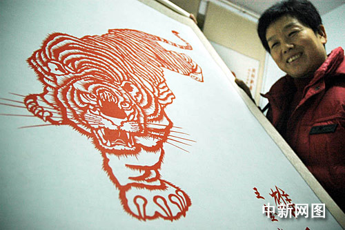 12月7日,河南淮阳县民间剪纸艺人王金梅经过两周时间创作的“雄风虎”亮相。该作品栩栩如生,维妙维肖,活灵活现,令人赏心阅目。(记者 齐永 通讯员 杨正华)
