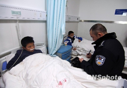 12月8日,湖南湘乡育才中学发生造成8名学生死亡、26名学生受伤的踩踏事故后,湖南警方对事件展开调查。 中新社发 郭国权 摄