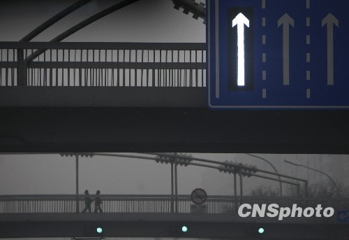 12月10日,北京再次遭受大雾围困,部分城区的能见度仅约百米,对民众交通出行造成影响。中新社发 杜洋 摄
