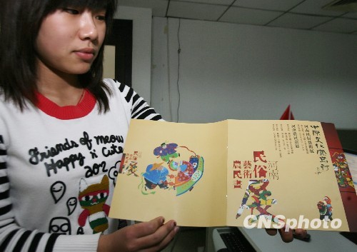 12月11日,河南郑州,“中原文化宝岛行”文化交流方面的“农民画”被展示。当日,河南省文化厅副巡视员康洁披露,“中原文化宝岛行”文化交流版块共有三方面内容, 一是大型乐舞《河洛风》演出,二是河南民俗艺术展,三是河南农民画展,旨在让岛内的人们进一步认识、了解、喜欢上河南的文化。此次“中原文化宝岛行”将于十二月十四日至二十日在台湾举行。中新社发 王中举 摄