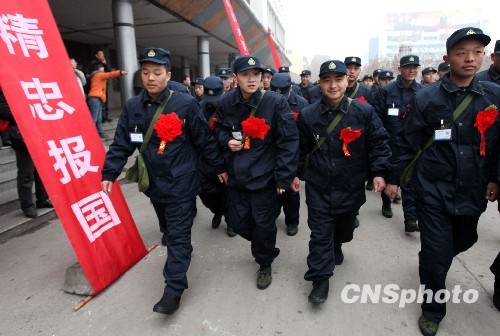12月11日,河南许昌在许昌火车站举行欢送新兵入伍仪式,欢送新兵奔赴军营。 中新社发 牛书培 摄