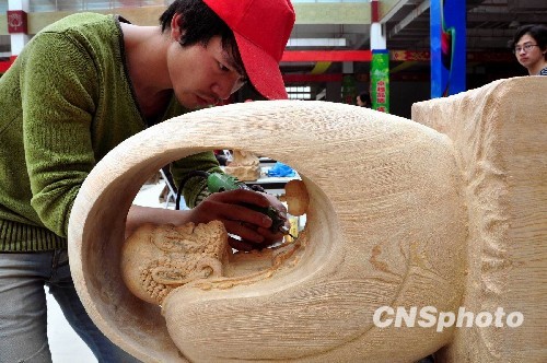 12月13日,为期六天的福建省首届工艺品雕刻(木雕)职业技能竞赛在福建莆田市落幕,来自福州、厦门等福建各地的50位木雕高手参加了比赛。本次竞赛以木质立体圆雕为主,分“人物造像类”、“动物花鸟类”两个类别,采用现场创作的形式。中新社发 林剑冰 摄
