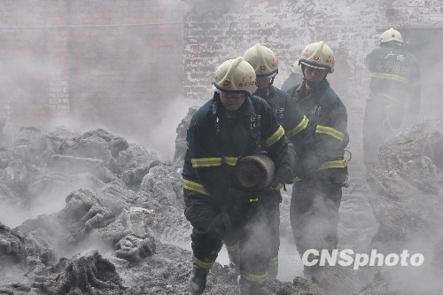 12月17日,广西南宁市明阳工业区一农药加工厂发生火灾,由于厂房内存放有大量液化气和氧气罐,形势危急。南宁市消防支队经济开发区中队和特勤一中队50多名官兵闻讯赶赴现场,经过1个多小时的奋力扑救,大火终被扑灭,没有造成人员伤亡。图为消防员从火海抱出多个气瓶。中新社发 蔡政 摄
