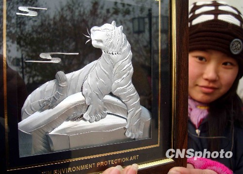 12月17日,在苏州市东北街民间工艺亭,由姑苏民间艺人用废旧易拉罐制成的各种立体感强、刻画逼真的金属艺术画,吸引了许多游客的目光。中新社发 王建康 摄