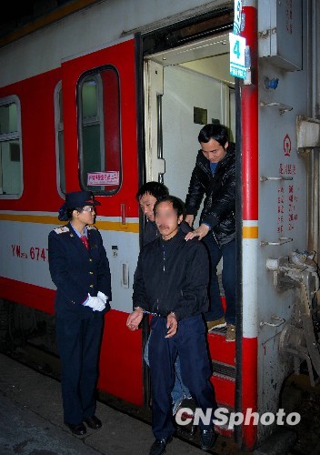 12月18日凌晨,警方将涉嫌故意杀人、拐卖儿童的犯罪嫌疑人林乐华从贵州押解回江西省乐平市。2009年10月16日,乐平市后港镇西冲村委会梅花园村村民林乐华将同村村民王春香(女)及其不到2岁的孙子鑫鑫(化名)诱骗至江西省吉安市,10月17日晚将王春香杀害,随后将鑫鑫拐至贵州省黔西南布依族苗族自治州兴义市欲卖,但没有得逞。12月14日上午,乐平市警方在林乐华临时租住地将其擒获,救出被拐儿童鑫鑫。中新社发 程万海 摄