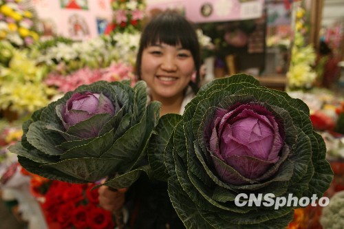 近日,一种名为“夜玫瑰”既像白菜又像玫瑰的花今年在北京悄然流行。据花卉市场营业员介绍,这种花的学名为“紫玉甘蓝”,与大家常吃的蔬菜很相似,因此很多人也叫它“大白菜”。这种花因其花朵硕大,花期长,近日备受顾客的追捧。中新社发 苏丹 摄