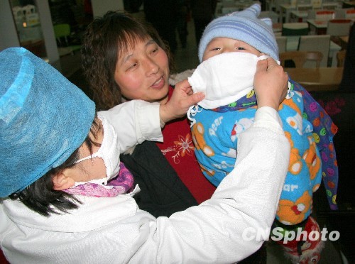 12月25日上午,淮北市社区卫生服务站的医务人员来到皖北最大的久兴批发购物中心,给老人和孩子佩戴口罩。为有效预防甲流,该市卫生局组织医务人员走进公共场所,给老弱残疾群体发放口罩,并对环境进行消毒。 中新社发 李春辉 摄