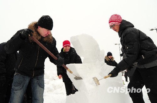 12月26日,黑河首届中俄青少年雪雕邀请赛在黑河中俄青少年活动中心举行。来自俄罗斯布拉戈维申斯克市青少年组2个代表队与黑河市小学组11个代表队、中学组5个代表队,共18个队100多名学生参赛。 此次邀请赛以“走进冰雪,快乐成长”为主题,旨在给中俄青少年提供一个张扬个性、展示才华的舞台。竞赛场面热烈、气氛融洽,充分发挥了孩子们的想象力、创造力、协作力,同时也进一步加深了中俄两国青少年之间的友谊。中新社发 邱齐龙 摄