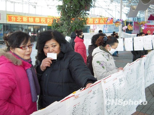 12月26日,齐齐哈尔市妇联单身俱乐部圣诞联谊会暨第三届相亲大集正在进行。此次相亲大集报名者年龄在20岁到60岁不等,其中以30岁到40岁之间的中青年人居多。工作人员除了为报名者制定了详细的会员档案外,还制作了“中意贴”。相亲者及其家属通过看会员档案,如果找到中意者,就把“中意贴”贴到她(他)的会员档案上,工作人员就会帮你“众里寻她(他)”。中新社发 王云龙 摄