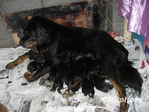 12月29日,山东滨州一只名叫“地雷”的藏獒妈妈在哺育它的12只幼崽。日前,滨州市民郑先生家中的藏獒“地雷”产下12胞胎,12只小藏獒全部成活。据郑先生介绍,去年这只藏獒曾一胎产下13崽。据了解,通常情况下,藏獒一胎只产六七只崽,山东滨州藏獒“地雷”连续产仔12只、13只,堪称“英雄藏獒妈妈”。中新社发 张滨 摄