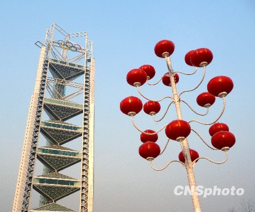 12月下旬,北京奥林匹克公园,一组充满喜庆色彩的大红灯笼景观在此亮相,洋溢出浓郁的节日氛围,迎接新年的到来。 中新社发 玉龙 摄