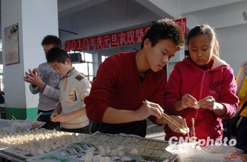 12月31日,山西长治市特殊教育学校开展庆元旦家政活动。聋(盲)残学生们通过包饺子、吃饺子,喜迎新年到来。 中新社发 梁栋 摄