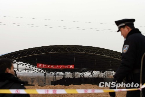 1月5日,公安特警在安阳曹操高陵发掘现场值勤,此地由当地警方24小时严密把守,外人一律不得入内。中新社发 王中举 摄