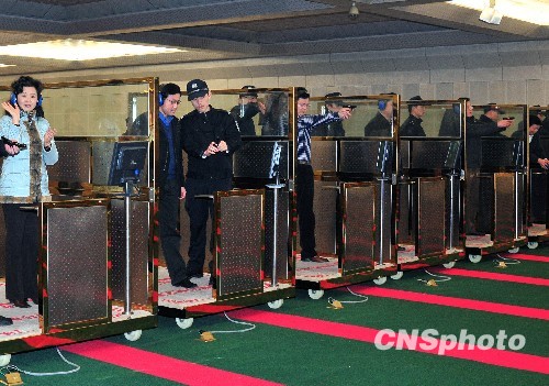 1月8日,临近年关,为确保新春安全稳定,福州公安训练基地首次对外展示,图为部份特邀民众体验警方射击训练的模式。中新社发 张丽君 摄