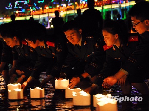 得悉云南公安边防总队李钦、钟荐勤、和志虹三名维和战友遇难的消息后,1月17日晚间,驻守在云南省西双版纳傣族自治州的边防支队官兵来到“一江连六国”的澜沧江边放水灯,用傣族特有放水灯的方式,寄托对遇难战友的哀思。中新社发 潘宗卫、杨孟龙 摄