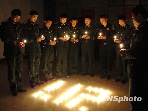 1月19日,在海地地震中遇难的八名中国籍维和人员遗体运返回国。图为18日晚福建平潭边防官兵自发组织对死难的战友进行默哀和对海地正在受难的人们祈祷祝福。中新社发 黄煜情 摄