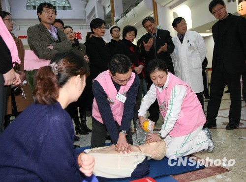 1月19日,在迎世博会倒计时100天之际,“上海市医务青年志愿者生命救护培训启动仪式”在上海儿童医学中心举行。“迎世博,上海医务青年志愿者生命救护培训站”亦同时揭牌。活动现场,上海儿童医学中心资深导师为首批来自上海各医疗单位的青年医务志愿者代表进行培训并考核,合格者将接受由AHA认证的急救员资格证书。