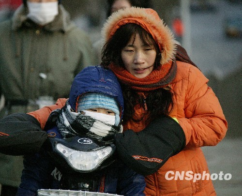 2010年1月20日是大寒节气,在北京东三环双井桥附近,行人们穿的严严实实迎接今年以来京城第二次寒潮天气。中新社发 马毅行 摄