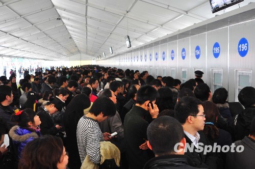 1月20日下午3时,位于铁路上海站北广场地区的火车票“大卖场”开售1月30日春运第一天车票。中新社发 沈春琛 摄