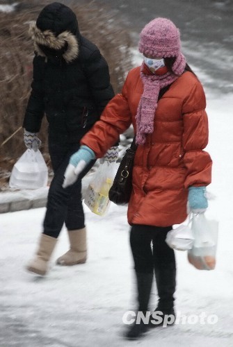 2010年1月20日,受强冷空气影响,辽宁大连迎来寒潮降温风雪天气。当日是农历大寒,当地气象台发布寒潮与道路结冰黄色预警信号,海面阵风9级,降温幅度将达10到12度。 中新社发 王锡增 摄