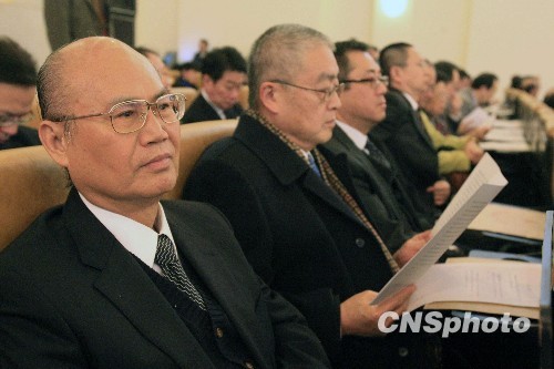 1月25日,上海市政协十一届三次会议开幕,上海市台湾同胞投资企业协会会长李茂盛(左)等二十多位台商代表列席该会议。中新社发 潘索菲 摄