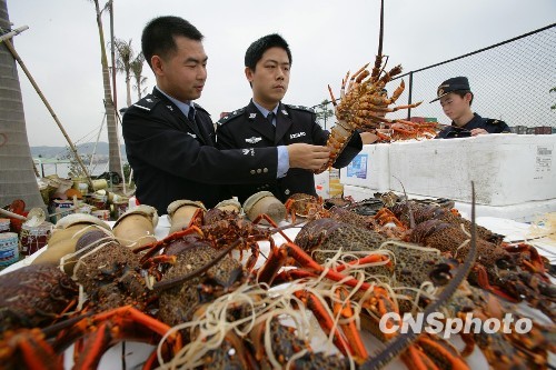 1月25日,广东黄埔海关透露,该关日前在珠江口水域查获了一起高档海鲜走私案,案值约130万元。由于春节临近,珠三角地区海鲜市场需求旺盛,不法分子为谋取非法利益,不惜走私进境。 中新社发 韦志军 摄
