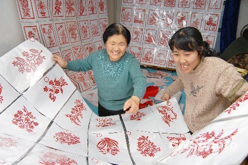 辽宁省锦州市凌河区新制社区七旬老人蒋励勉,为了丰富晚年生活,从2004年开始自学民间剪纸艺术,5年来先后创作了《古代佳人》、《当代英雄人物》、《京剧脸谱》系列和花鸟鱼虫等剪纸作品近千幅,并多次在省、市、区各类剪纸比赛中获奖。春节前夕,老人利用半年时间创作完成了以100种花卉为造型的《百花图》,同时还剪出了吉祥虎、迎新春喜庆剪纸近百幅。