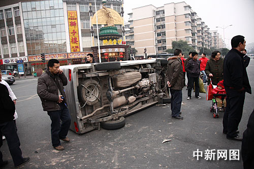 据一位目击者介绍说,面包车按照正常行驶路线直行,突然遇上一辆即将左转弯的出租车,面包车司机见机后立即左拐以避免撞车发生,由于转得太急最终导致侧翻,但还是未能避免与左转来出租车相撞,事故发生后,面包车内的乘客司机马上从车内撤离,未发生人员伤亡。
