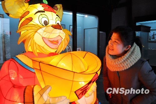 2月3日,一名游客在南京民俗博物馆举办的“虎年民间艺术大展”上观赏“虎灯”。此次大展展示了云锦、剪纸、金箔、灯彩等20个门类50多名艺术家和传承人的近百件民间虎文化作品。据了解,虎年民间艺术大展4月5日结束。 中新社发 谷昌旺 摄