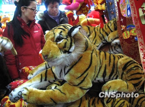 2月4日,北京一市场人流攒动,2010年农历虎年就要来到,北京市场上生肖虎受到消费者的欢迎。中新社发 邹宪 摄