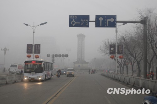 2月8日,浓雾笼罩着河南省焦作市。7日小雪后,河南省大部分地区遭遇了新春来的首场罕见大雾,局部地区能见度不足百米,气温也随之降低,给居民生活出行带来诸多不便。中新社发 唐玉磊 摄