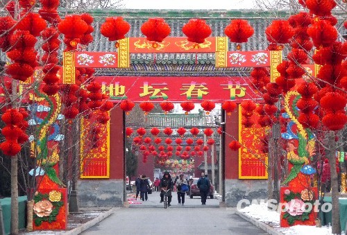 2月9日,北京2010年第25届地坛春节庙会场地布置一新,洋溢出一派浓郁的喜庆气氛,盛装迎接虎年春节庙会。中新社发 玉龙 摄