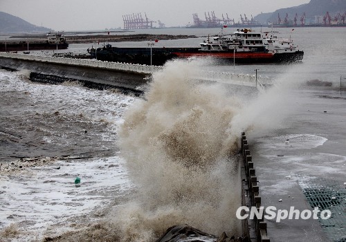 2月10日,江苏连云港遭遇新一轮降雨降温和大风天气,气温降幅明显,沿海海面偏北风8级,阵风10级。海上出现狂浪巨涌,恶劣天气给船舶海上航行带来影响,沿海渔船全部进港避风。中新社发 王健民 摄
