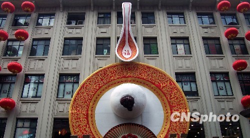 2月9日。中国传统新年即将来临,“吃汤圆过新年”大型景观亮相上海街头。表示新的一年家家团团圆圆、和和美美、平平安安。中新社发 周东潮 摄