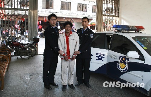 2月10日9时,广西平乐县男子李某因恋爱不成,怀恨在心,携双刀撞进民宅砍死3人、重伤1人后落入玉林市警民联合搜捕网。中新社发 冯春晖 摄