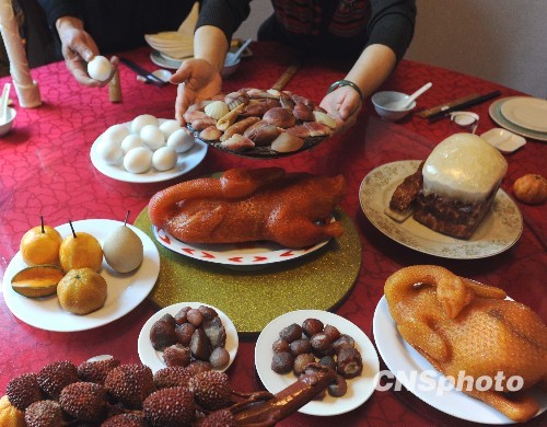 2月11日,由福州寿山石、广西石、玛瑙、玉石、天然石、矿石和化石等组成的“烤鸭、荔枝肉、鱼肉、鸡、虾以及蔬菜、水果”等30多碗“石头年夜饭”在福州精彩呈现,令众多市民叹为观止。这是福建收藏家张祖仁在福州展示由他十多年间跑遍中国各地收藏的“石头大餐”,让市民“品尝”“石头年夜饭”。中新社发 刘可耕 摄