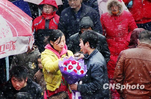 2010年2月14日,中国农历新年第一天,又值西方的情人节,安徽淮北鲜花俏销,街头巷尾洋溢着喜庆和浪漫的气氛。中新社发 岳建文 摄