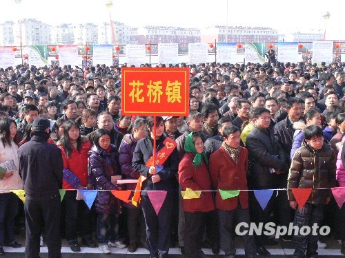 2月19日,安徽芜湖县在市民广场举行企业用工大型招聘会,300多家企业提供就业岗位16000多个,主要涉及机械设计、车工、钳工、化验、销售、财务等近百个工种,吸引了50000多名返乡农民工前往应聘。中新社发 张致荣 摄