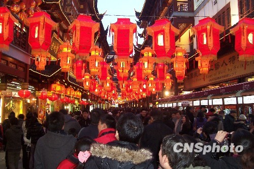2010年春节,上海豫园里的赏灯会吸引中外游客。中新社发 周东潮 摄