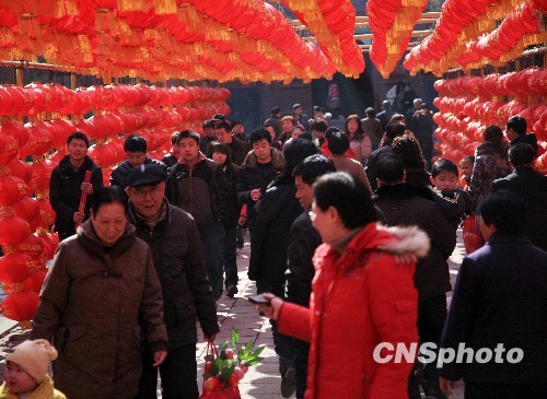 2月20日正月初七,是中国内地结束春节假期上班的第一天,河北正定大庙会隆兴寺观光的游人依然络绎不绝。据该省旅游局统计,黄金周七天共接待游客283.9万人次,实现旅游收入8.9亿元人民。有“京南第一古刹”之称的正定隆兴寺春节期间接待游客1.7万人次,比去年同期增长43%。中新社发 翟羽佳 摄