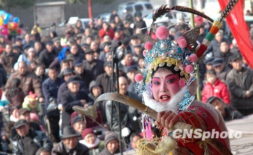 2月20日,社旗县越调剧团演员在“流动舞台车”上表演传统地方戏。虎年新春,河南省社旗县组织文艺工作者利用“流动舞台车”在全县开展送戏下乡活动,一台台精彩的免费戏曲展演,丰富了群众的节日文化生活。 中新社发 宋同杰 摄